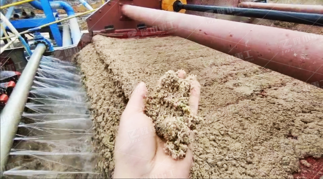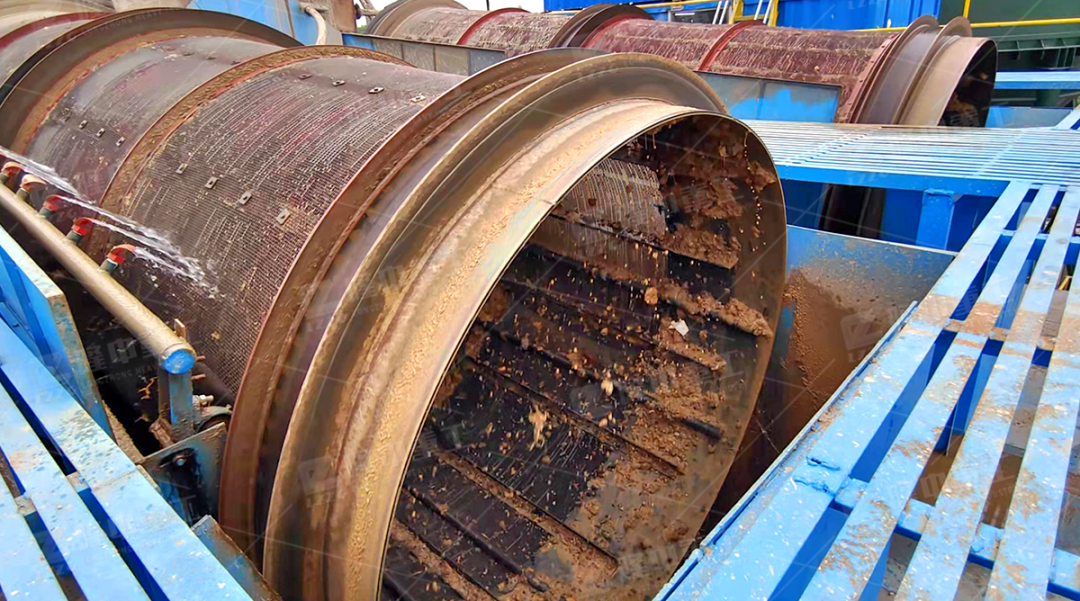 1、物料先通過篦條進入料漿池,同時加清水進行稀釋,料漿池中的漿料通過鏈斗提升機送至滾筒篩進行篩分,篩上物通過傳送帶運至石子堆場,篩下物通過溜槽進入到擦洗機進行攪拌擦洗。