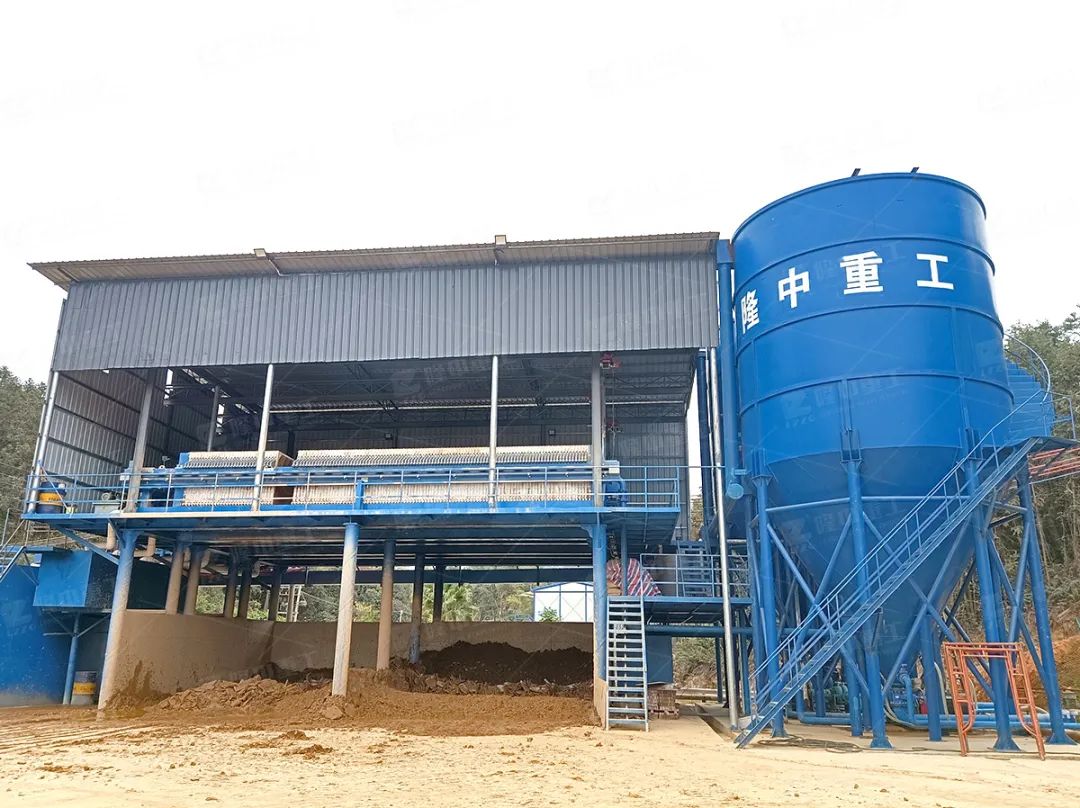 二、回收裝置溢流污水進入污水池,再通過三氫凈化體專用泵送至三氫凈化體進行濃密,經三氫凈化體濃密后的泥漿由壓濾機專用泵抽取,打入廂式壓濾機進行壓濾,并形成泥餅然后干排;