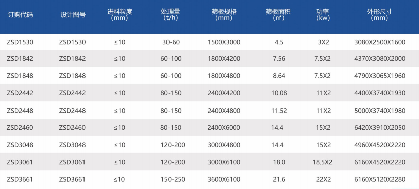 4、規(guī)格多樣:ZSD系列振動篩型號齊全,并有振動電機(jī)和激振器兩種振源形式,可適應(yīng)不同作業(yè)環(huán)境需求。
